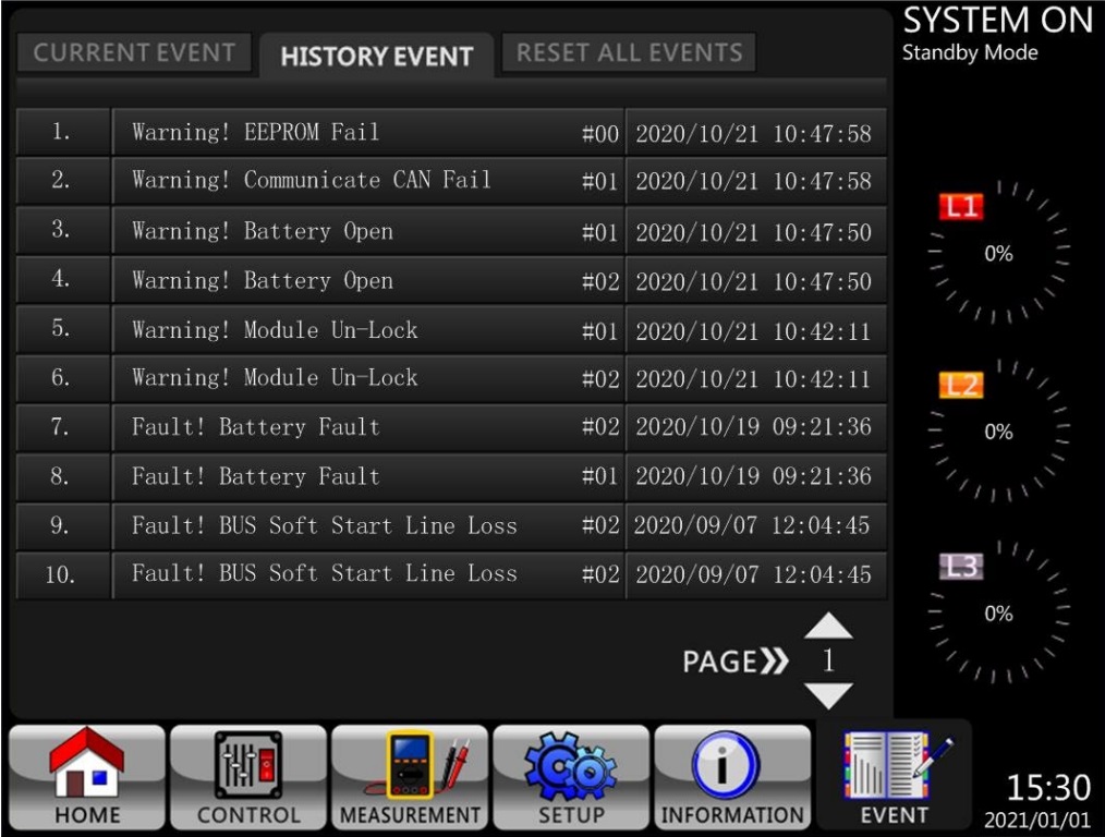 - Intuicyjny wykres analizy zasilania: statystyki zdarzeń, eksport wykresów danych historycznych.