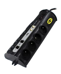- Filtr ochrony przed przepięciami o pochłanianiu 70 J przy 200V dla sygnału TV SAT (2 złącza koaksjalne)