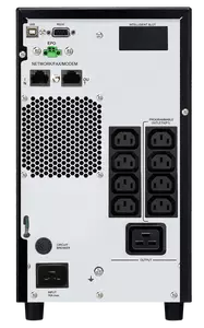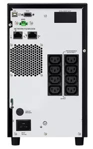Oferuje funkcję awaryjnego wyłączania zasilania (EPO) i opcjonalne złącze do podłączenia zewnętrznego akumulatora, co wydłuża czas pracy.